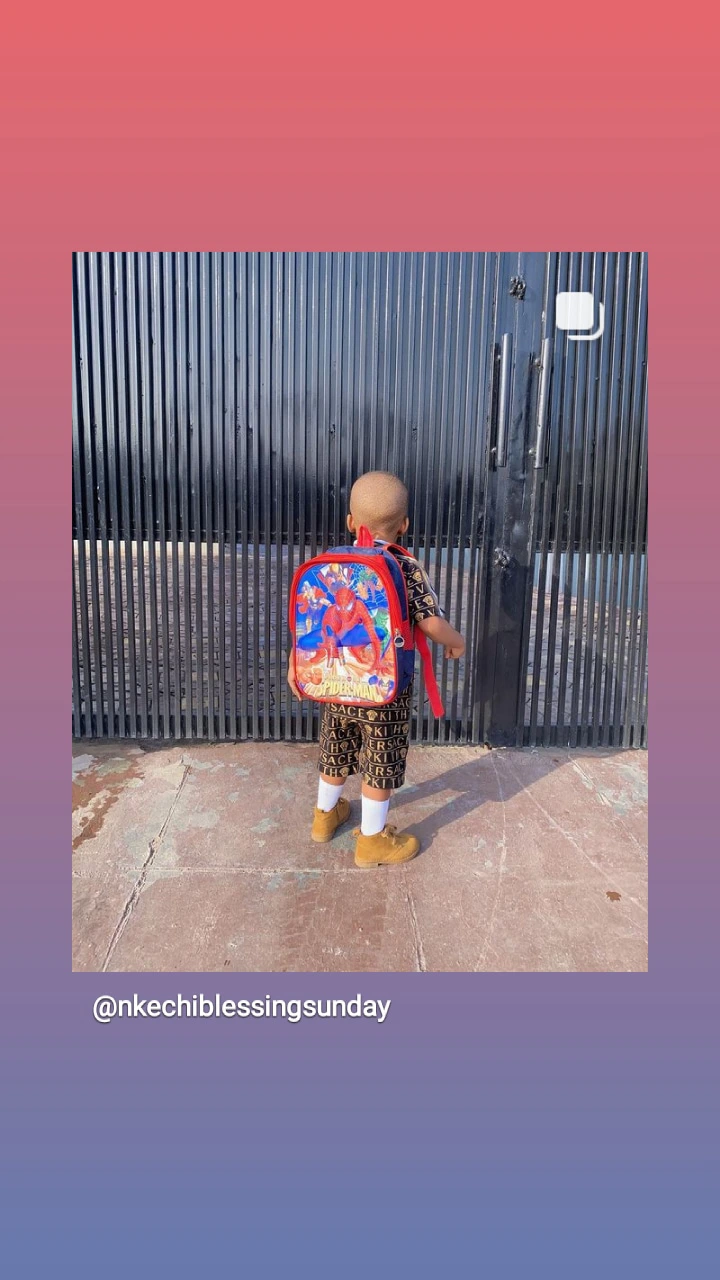 The pretty Yoruba actress Nkechi Blessing Sunday took to her social media platform, to reveal that her handsome son, Novah starts school today, 10th of May 2021. Nkechi Blessing Sunday shares photo of her son carrying school bag on his back, as he starts school today.