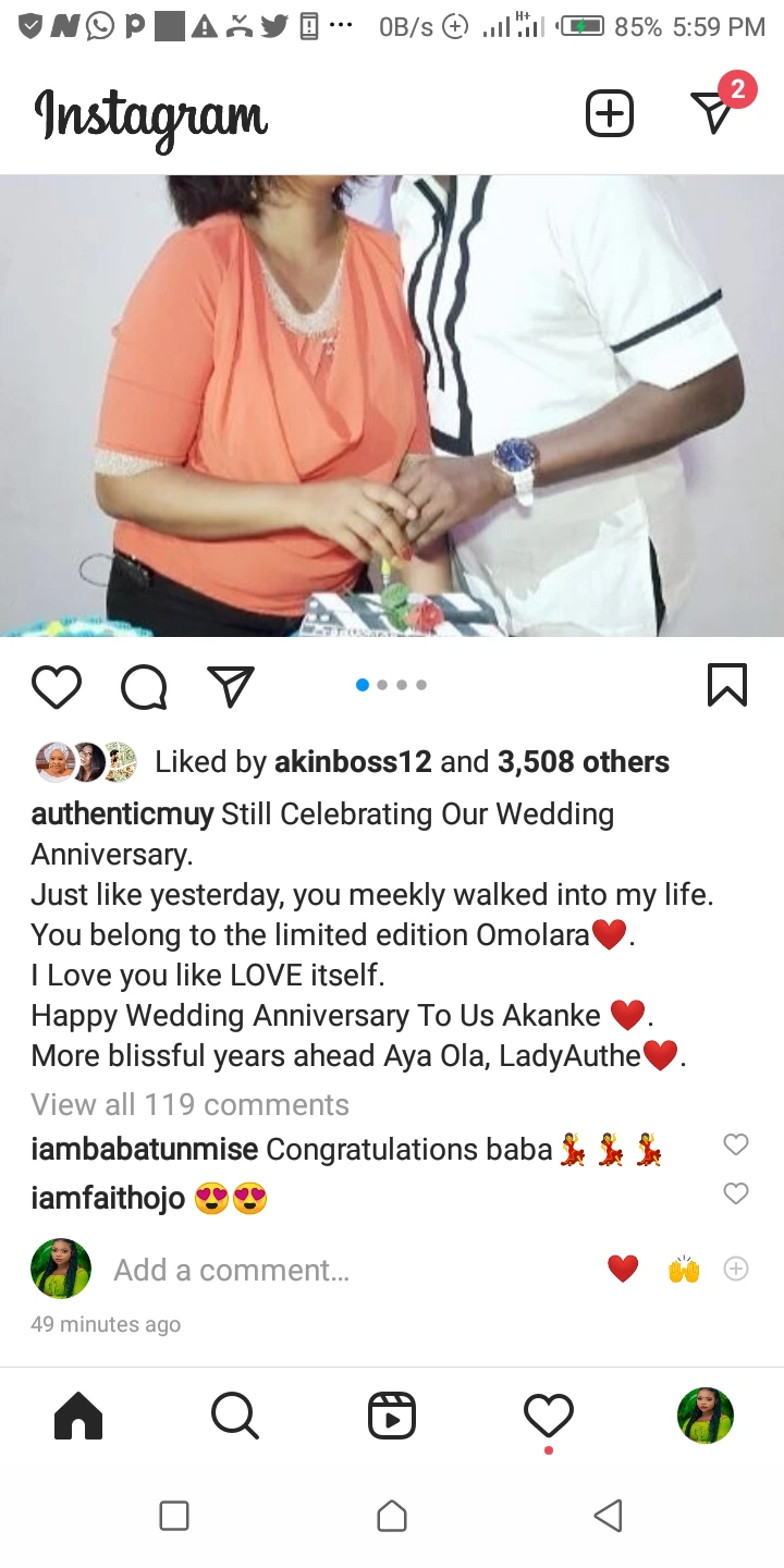 Muyiwa Ademola took to his social media platform, to share lovely throwback pictures of himself and his wife and wrote; Still celebrating our wedding anniversary. Just like yesterday you meekly walked into my life, you belong to the limited edition Omolara. I love you like Love itself, happy wedding anniversary to us Akanke, more blissful years ahead he said. Muyiwa Ademola is a talented yoruba actor, movie producer, scriptwriter, entrepreneur and an award winning actor. Muyiwa Ademola got married to his wife on June 24th, 2006. Muyiwa Ademola and his wife are blessed with 5 children including a set of twins. Muyiwa Ademola has featured and produced several blockbuster Yoruba movies. Some of the movies he has produced includes Fimi Dara Ire, Iranse Aje, Aderonke, Ami Ayo, Ori, Iyonu Olorun, Ogo Osupa, Etutu Mi, Akinkanju among others. Muyiwa Ademola has won numerous awards and nominations to his name.