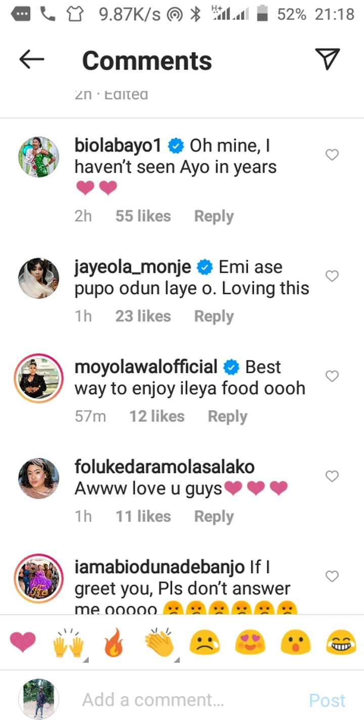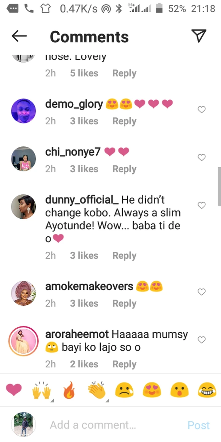 This lovely video elicited positive responses from Nollywood fans and celebrities. Celebrities who have sent love emojis include Moyo Lawal, Peace Sonia, Biola Adebayo, Jaiye Kuti, Foluke Daramola, and Jumoke George.