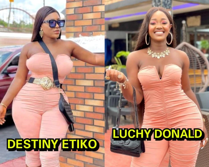 The Nigerian popular actress, Destiny Etiko and her colleague Luchy Donald are well-known to be blessed with a good body stature and also have a high fashion taste. The duo have thrilled us on social media with their outfit as they both stuns in same color sleeveless jumpsuit. Check out their images below: